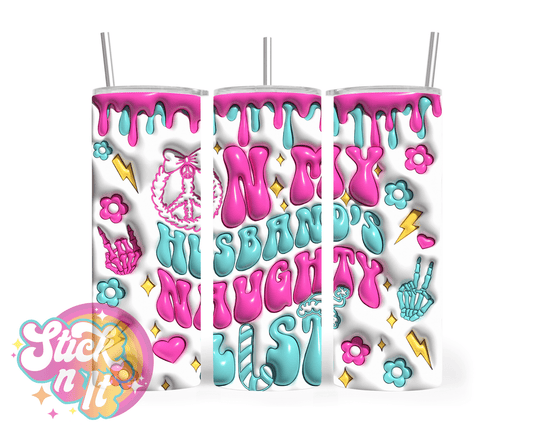 ON MY HUSBAND'S NAUGHTY LIST INSULATED TUMBLER